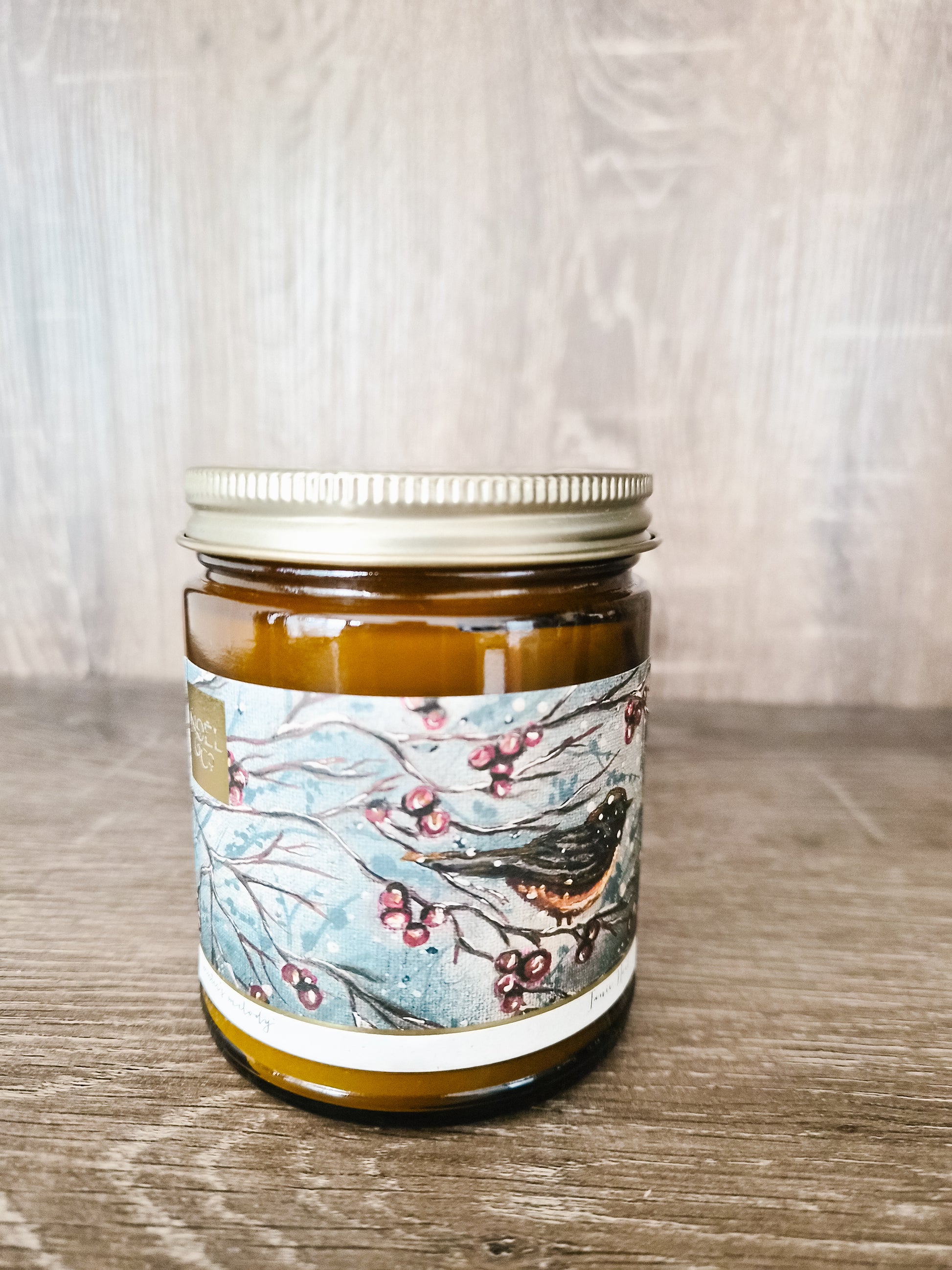 Clementine zest and marshmallow cream softened by a hush of vanilla. This special candle was hand painted by my sister Janie.